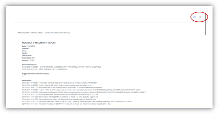 RPM Reviews- [RPM Services Only] Contains passive notification monthly care plan summation reports for passive and/or active vital notifications. If facility has DS Smart Vital Sign Management, monthly data reports will populate here